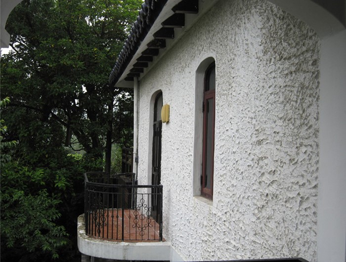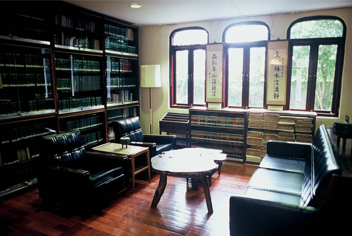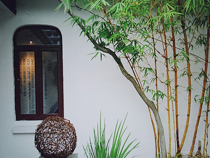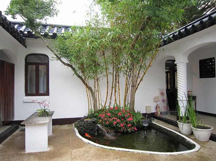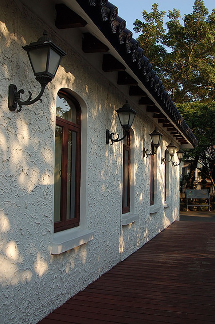 林語堂故居座落陽明山腰,興建于民國五十五年,由先生親自設(shè)計(jì),建造則是由王大閎完成,是先生生前最后十年定居臺灣的住所。本建筑是以中國四合院的架構(gòu)模式,結(jié)合西班牙式的設(shè)計(jì)取向,兼具東、西方風(fēng)格,融合了現(xiàn)代感與古典美。藍(lán)色的琉璃瓦搭配白色的粉墻,其上嵌著深紫色的圓角窗欞,意境典雅精致。從西式拱門走進(jìn),穿過回廊,可見透天中庭,西班牙式螺旋廊柱被和煦的陽光輕輕地拉長身影。語堂先生愛竹、愛石,所以他刻意在中庭一角,由翠竹、楓香、蒼蕨、藤籮等植物,與造型奇特的石頭,營造出可愛的小魚池,他常坐在池邊的大理石椅上,享受“持竿觀魚”之樂。