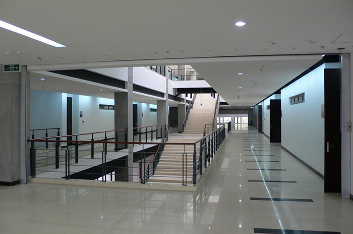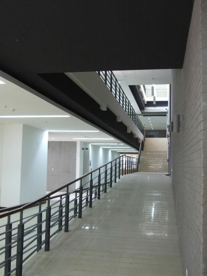 北大公共教室樓針對公共教室建筑人流量大,長時間停留,集中使用的特性,通過多入口及復(fù)合性交通流線的設(shè)計,徹底改變了傳統(tǒng)中走道教室建筑的物理性能,完成了高效組織自然通風(fēng)及采光,并通過對多專業(yè)綜合節(jié)能措施的使用,對務(wù)實經(jīng)濟回收的考量,對建筑與教育特性之間關(guān)系的研究,以及針對學(xué)習(xí)者多種交流需求的空間創(chuàng)造。本工程位于北京大學(xué)校園內(nèi),總建筑面積33508.4平方米。其中地上建筑面積19700.6平方米,地下建筑面積13807.8平方米。地上5層,建筑高24米,共有74間教室,其中200人以上的教室8間,可容納7380人同時上課。